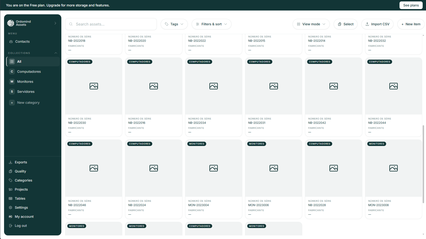 Asset management for teams. One inventory. No more spreadsheets. Ordomind Assets gives you a workspace per client, a single shared inventory, and role-based access (Admin, Manager, Operator, Viewer). Add reference tables for locations, responsibles, and status; use presets for computers, monitors, servers, and vehicles or create custom categories. Export to PDF or CSV and replace scattered asset spreadsheets with one place your whole team can trust.